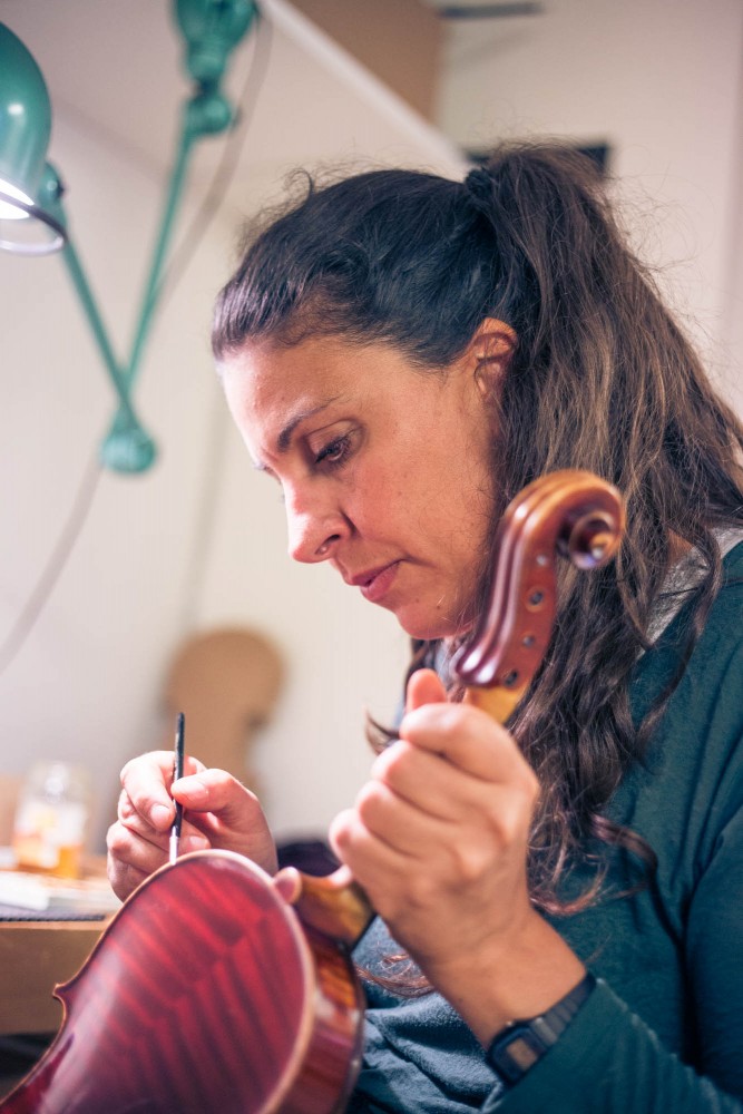 Born in 1976 in Montauban (France), Claire Chaubard completed her scholarly and musical studies at the Conservatory of Music in Montauban (violin, piano). In 1996, she decided to become a violin maker. After a successful entrance examination, she started her apprenticeship at the Mittenwald State School of Violin Making in Germany in 1997 and obtained her diploma as violin maker in 2000. In the following years, Claire Chaubard gained experience in the field of violin making, working together with renowned master craftsmen around the world. After working in Australia, France and Germany, she obtained the Master Craftsman Diploma of Violin Making issued by the Bavarian Chamber of Handicrafts. In 2005, she started her own business and became self-employed in Landsberg near Munich (Germany), where she repairs and restores fine string instruments. She also builds new violins, violas, cellos of the finest quality and sound.