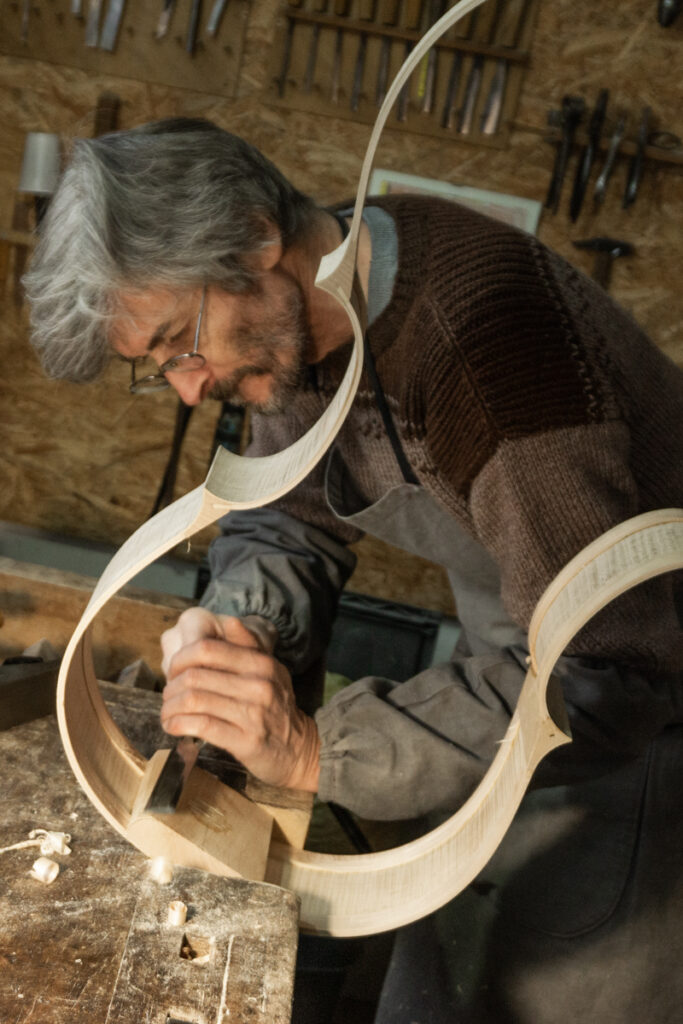 Born in France in 1959 from a three generation carpenter family, Frédéric Noharet began building dulcimers at 13 in his father shop. At 16 he face himself with the construction of a guitar as an autodidact. He move to Italy at 19 to enter the Cremona International Violinmaking School , and then graduate in 1982 under the guidance of Master Francesco Bissolotti. He moved to Parma the year 1986 and since 2014 he is one of the teachers at the” Scuola di Liuteria Accademia Scrolavezza” in Parma.